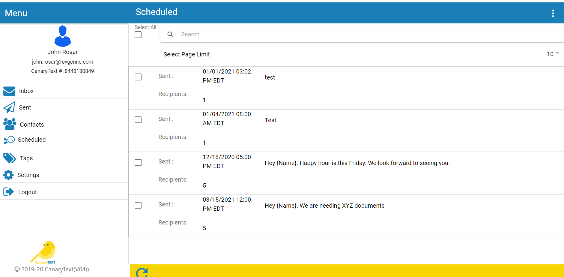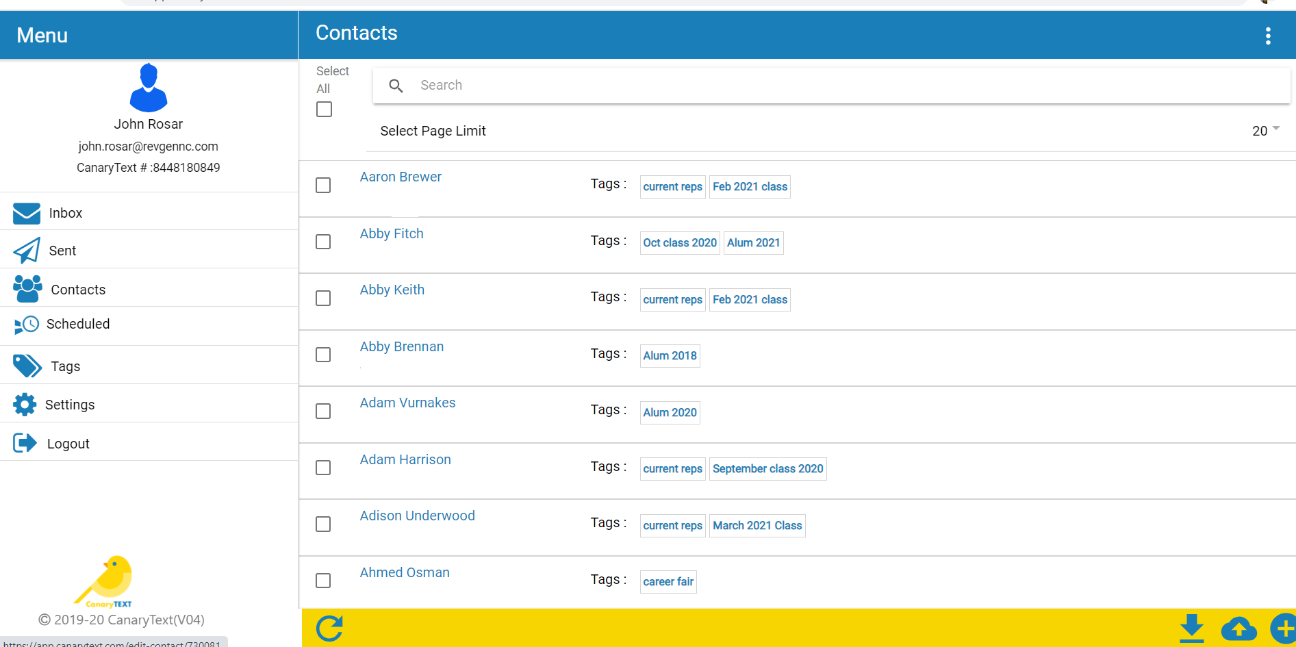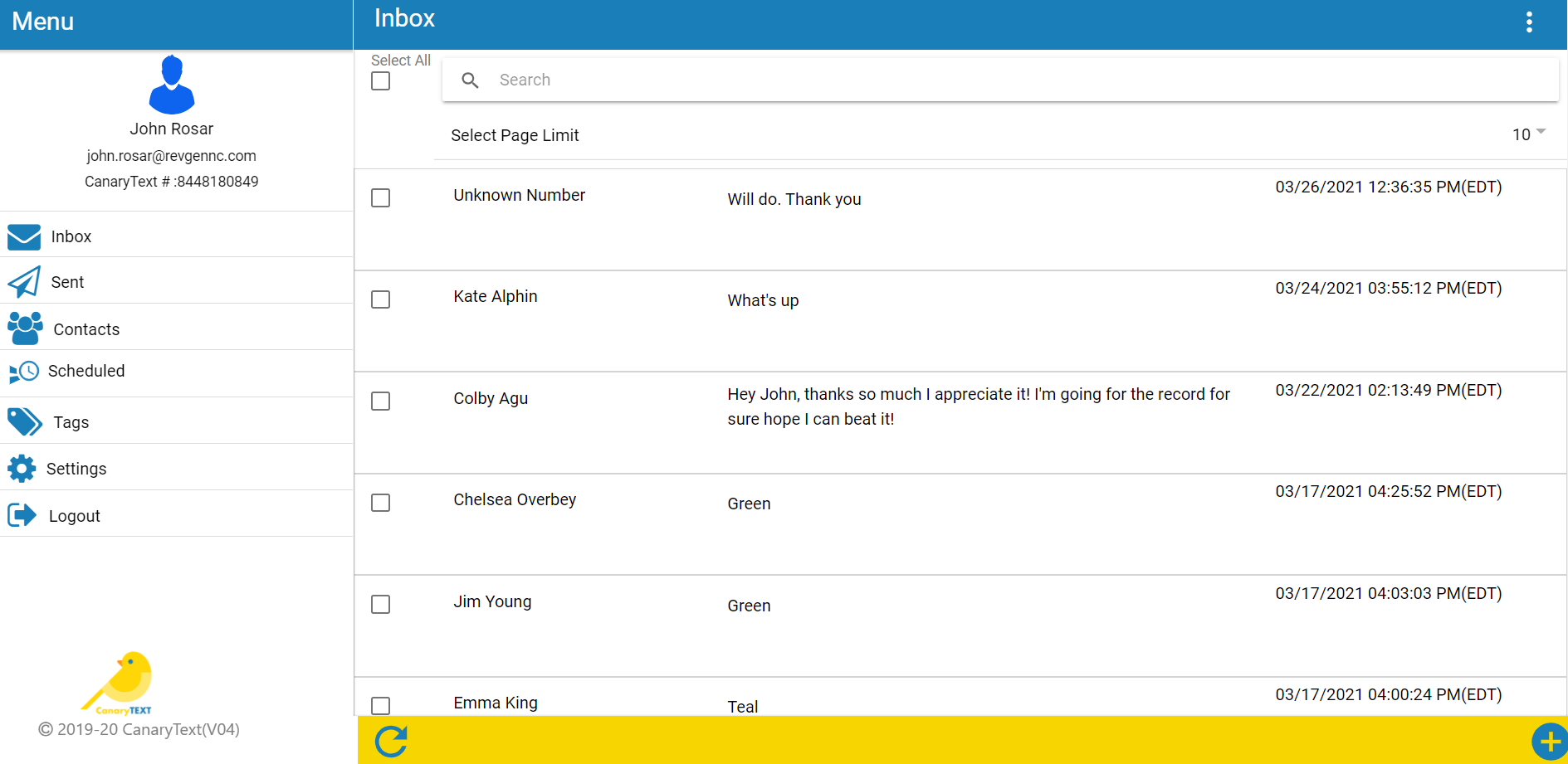 Canary text web application is used by a small business for group texting and exchanging communication through SMS via the web interface.