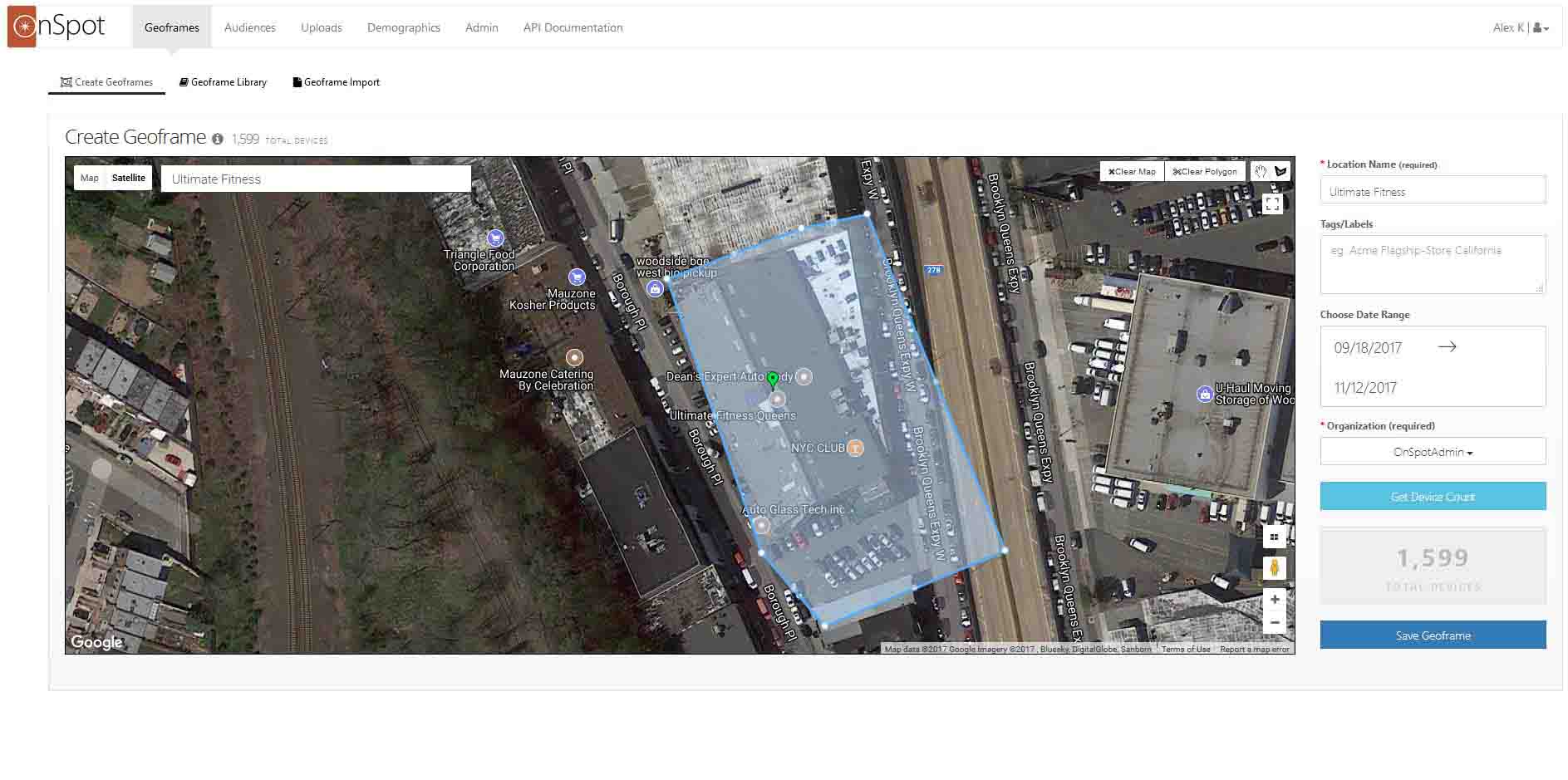 Onspot offers powerful mobile data insights and unparalleled targeting precision, A web application based on mobile geolocation targeting, Purpose of the Onspot is to help deeper understanding of any specified audience that have been to, or near, any location of interest area for marketing purposes.