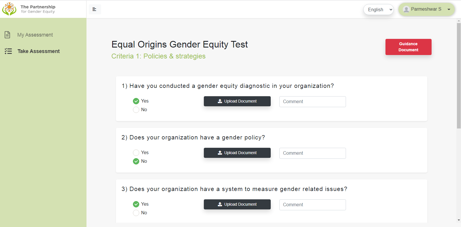 Producer organizations can give Gender equity assessment through this application. As per their responses score is calculated in the back-end and the Scorecard is generated after reviewing from Admin.