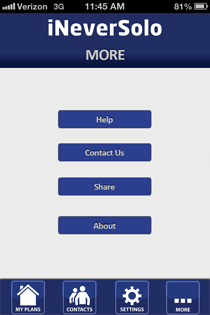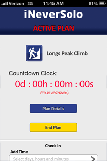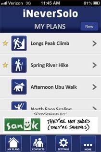 iNeverSolo is a cross platform (iOS and Android) emergence alert application. It allows a user to create a detailed plan for a particular activity (outdoor or urban), alerts the designated contacts via email if something goes wrong and the user is unable to reach the destination as planned.